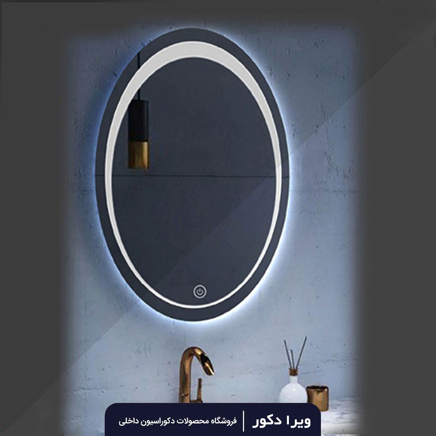 نورپردازی آینه بک لایت بیضی با کادر سندبلاست ساده